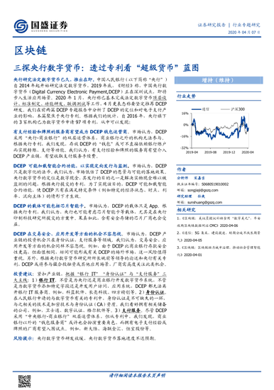 2020 年 1 月,央行称已基本完成法定数字货币顶层设计、标准制定、功能研发、联调测试等工作,4 月更表态称要坚定推荐 DCEP研发。