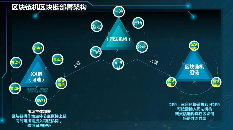 为此,西安灞桥法院率先引入了由北信源与安存科技联手推出的区块链机。区块链机因为可以作为物理节点与使用主体牢牢绑定,可从数据产生伊始就实时上链,不仅记录数据产生的时间,还能通过北斗定位保障区块链数据形成的地理位置(经纬度),从时间空间两个维度保证上链前后数据的物理性和真实性。此外,该设备不需要请专业人士通过云端部署上链,完全破除了技术门槛,让区块链上链像U盘一样插上就能用,而且该区块链机还可以支持跨链互通,并兼容多条主流区块链技术,可以简单快捷的链接至其他司法链,从而更好促进各司法机构互联互通,共治共享,提升协同效率。