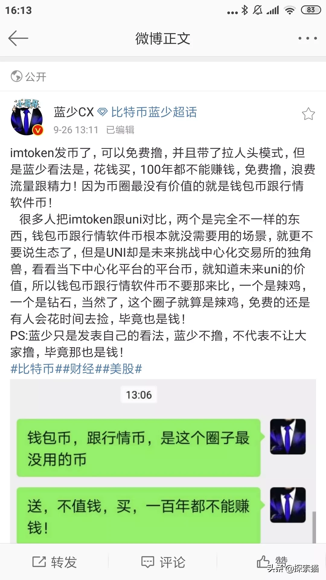 蓝少微博说:钱包币跟行情软件币根本就没需要用的场景,就更不要说生态了。。。看看当下中心化平台的平台币。区块链3.0时代,不仅是钱包,似乎所有APP变得不重要了,仅仅变成了一个基础工具,就像PC互联网时代的浏览器一样,有人用却没太大价值。而去中心化应用可以用在任意平台(IOS/安卓%20APP里H5页面、PC%20web页面),只要连接上钱包就行了。