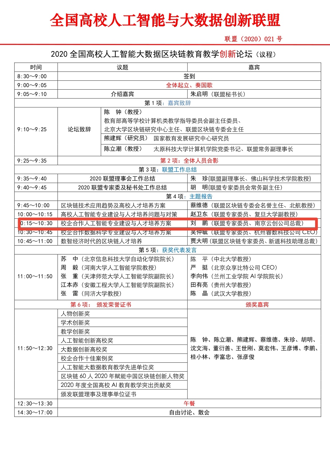 刘鹏教授受邀在全国高校人工智能大数据区块链教育教学创新论坛作报告